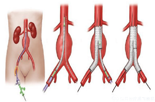 支架植入术:通过大腿血管放入覆膜支架,隔绝瘤体(无需开腹)。优点:创伤小、恢复快,适合高龄或体弱者。