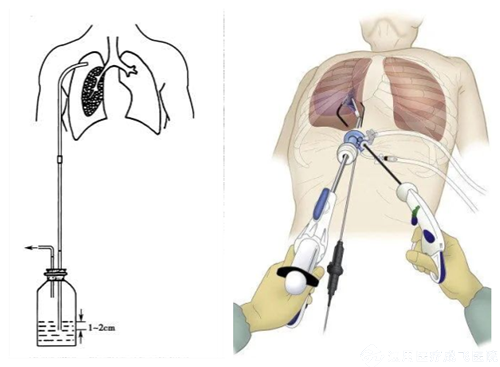 胸腔闭式引流:对于复发性或持续性气胸,需放置胸腔引流管,持续排出气体。