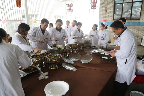 联欢会前医院班子成员、职能部门负责人对联欢会现场、午餐供应进行实地考察,对现场和食品安全、会场环境控制、娱乐项目安排等环节都做了精心的安排和布置。